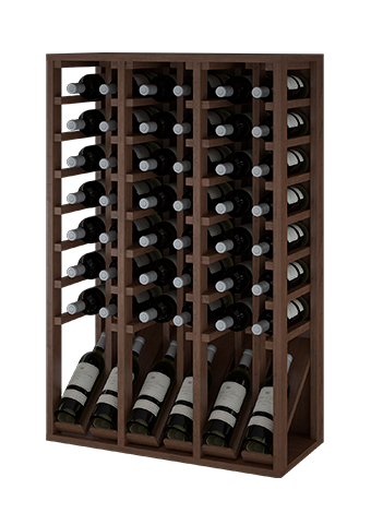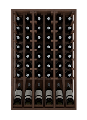 Botellero con 6 botellas de exposición y 42 en los huecos, Se caracteriza por sus formas rectas y sobrias que facilitan su instalación y ensamblaje modular con otros de nuestra misma serie Godello. La fila expositora ofrece fácil acceso a 6 botellas para identificar sus etiquetas favoritas.