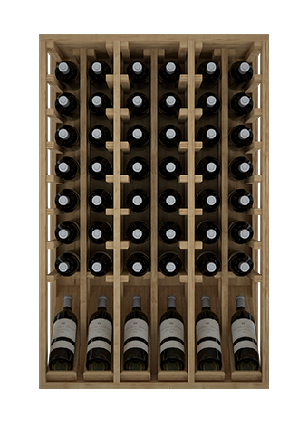 Botellero con 6 botellas de exposición y 42 en los huecos, Se caracteriza por sus formas rectas y sobrias que facilitan su instalación y ensamblaje modular con otros de nuestra misma serie Godello. La fila expositora ofrece fácil acceso a 6 botellas para identificar sus etiquetas favoritas.