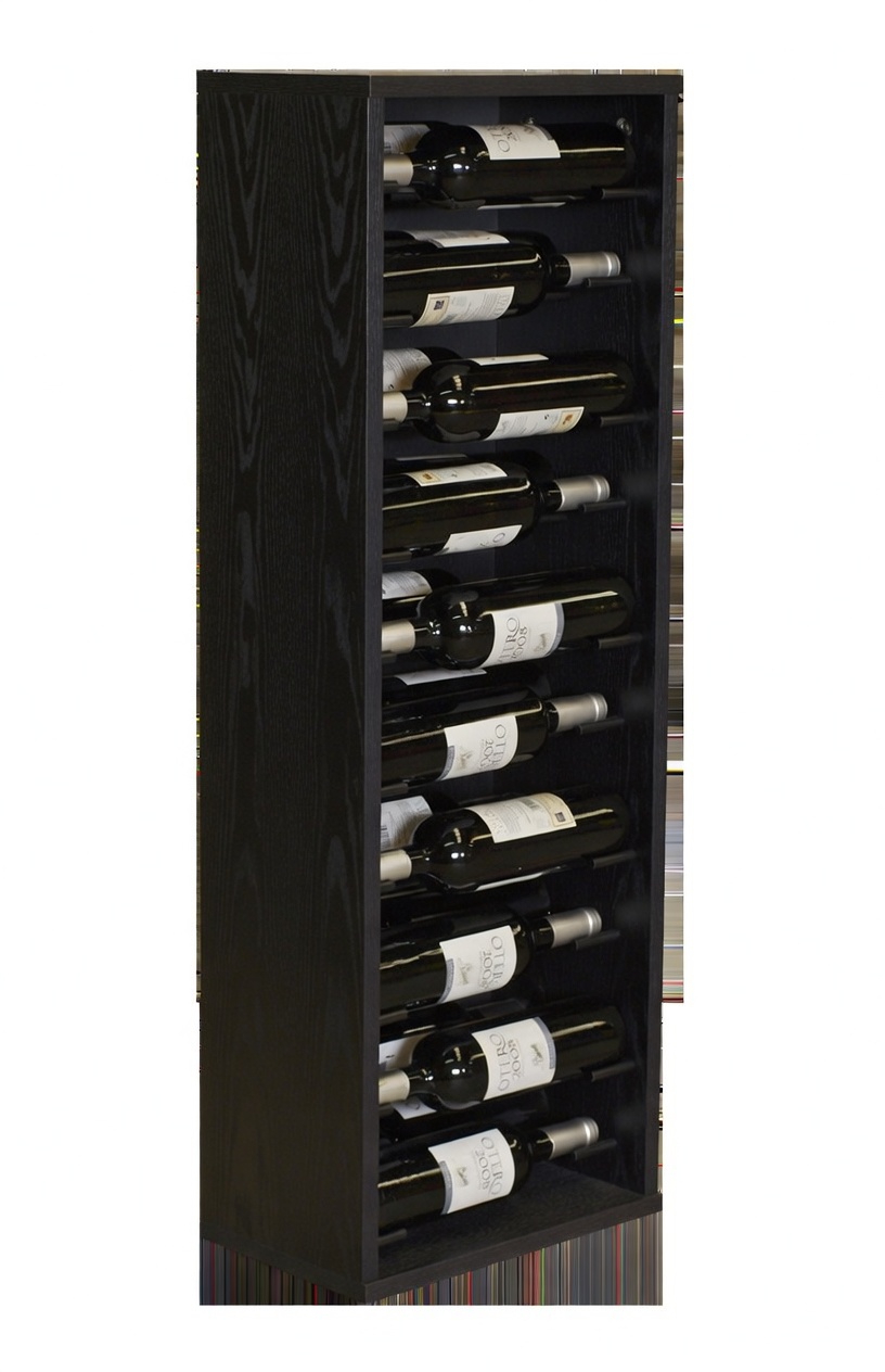 Cada botella reposa de forma segura en horizontal sobre soportes cilíndricos de madera exclusivos, garantizando que el corcho permanezca húmedo y el vino conserve todas sus propiedades durante años. El diseño profundo pero compacto (24 cm de fondo) lo hace ideal para pasillos, cocinas, salones o entradas, sin robar espacio en el suelo.