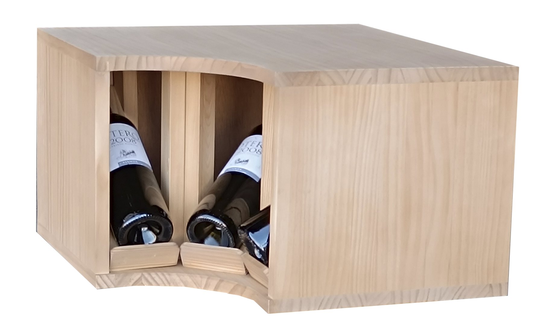 Versión cerrada del EX2195: laterales y fondo cerrados para mayor protección y discreción, ideal para aprovechar rincones con un look más reservado. Soporte único con hendiduras individuales para cada botella, manteniendo posición horizontal óptima y visibilidad frontal limpia.