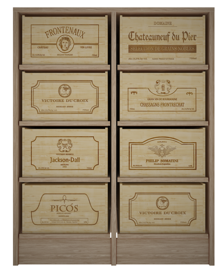 EX2545 - Estantería con 8 baldas deslizantes para cajas de 12 botellas.