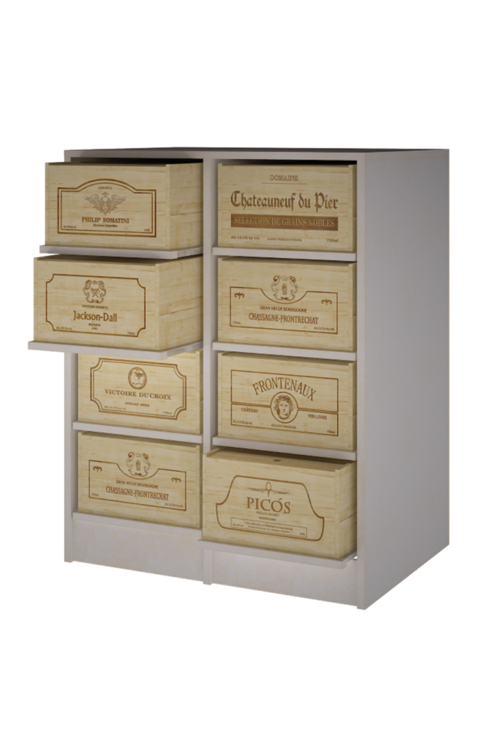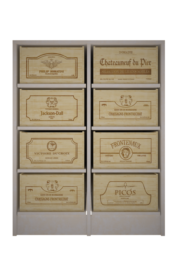 EX2545 - Estantería con 8 baldas deslizantes para cajas de 12 botellas.