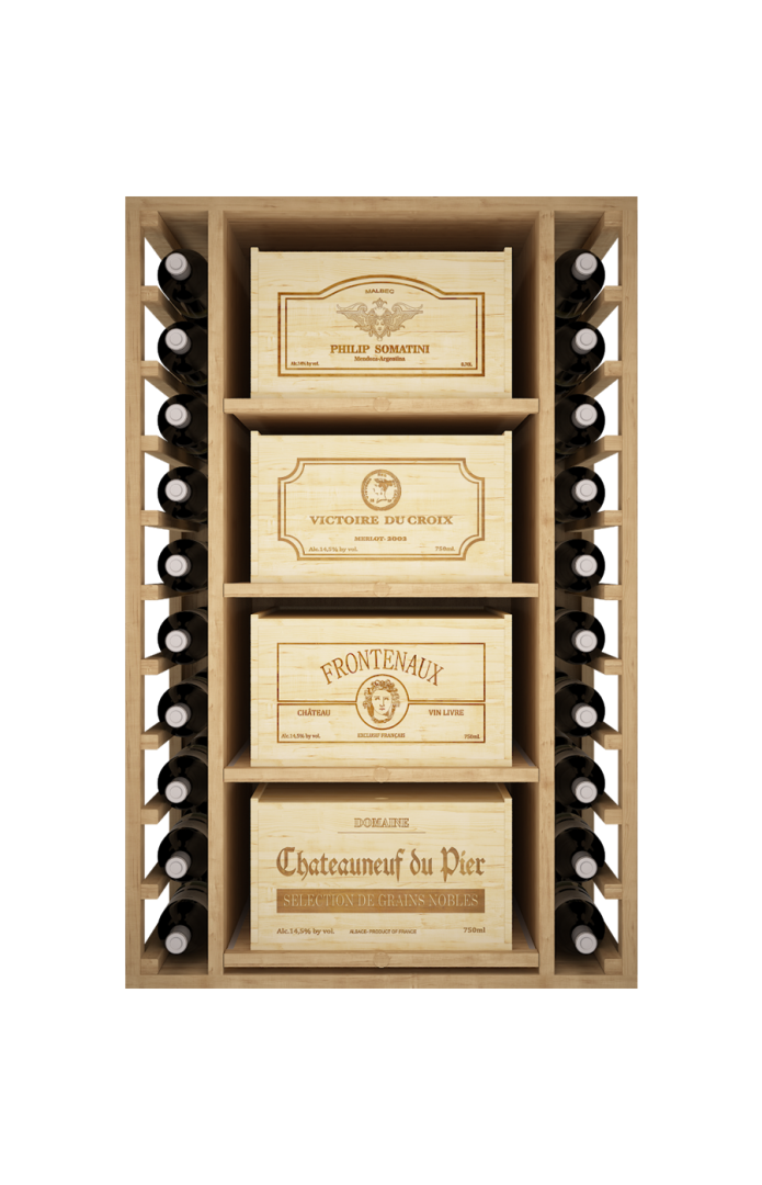EX2546 - Cajonera para 4 cajas de vino de 12 botellas + 40 huecos para botellas.