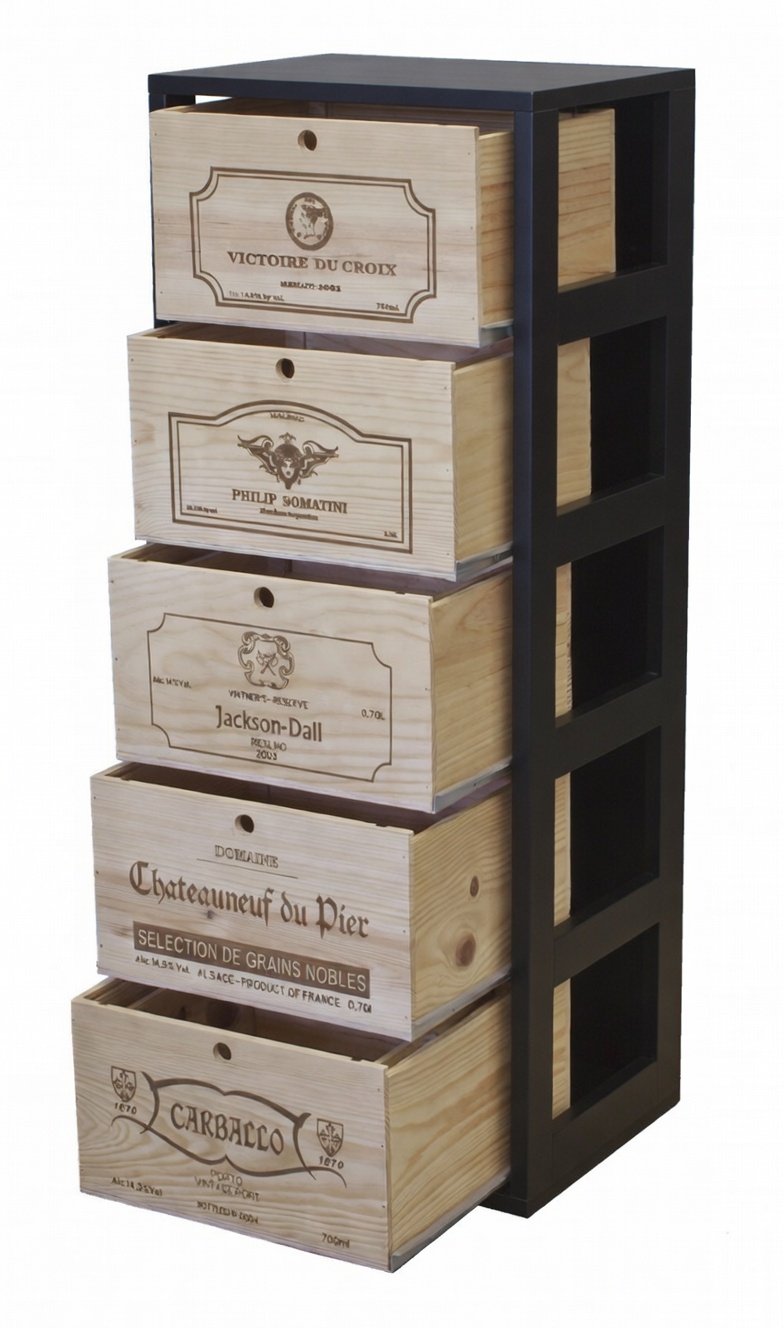 • Conservación y estética: Las cajas permanecen en posición estable, protegiendo el vino mientras conviertes el mueble en un elemento decorativo con historia – ¡las etiquetas de tus cajas se convierten en parte de la decoración!