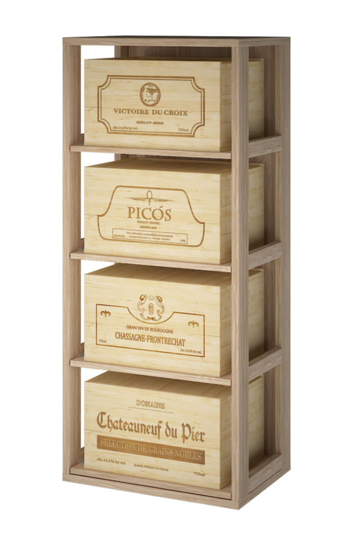 EX2558 - Mueble estantería para 4 cajas de 6 botellas de vino .