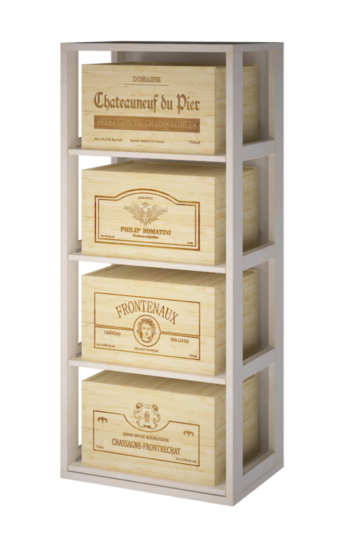 EX2558 - Mueble estantería para 4 cajas de 6 botellas de vino .