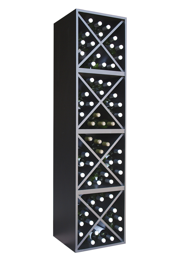 Su estructura alta y compacta está formada por 4 cubos en diseño cruz X, que ofrecen una sujeción segura, excelente ventilación y una presentación visual muy atractiva de las etiquetas. Perfecto para restaurantes, tiendas de vinos, bodegas profesionales o espacios comerciales donde la capacidad y el impacto estético son clave.