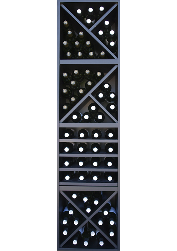 Con su estructura alta y estrecha en cubos con diseño cruz X y baldas extraibles, ofrece una sujeción segura para decenas de botellas, excelente ventilación y una exhibición visual atractiva de las etiquetas. Es la pieza individual (parte A) que, al combinarse con la parte B (disponible por separado), crea la impresionante composición C completa: un botellero modular de mayor altura y capacidad que maximiza el espacio vertical sin perder elegancia.