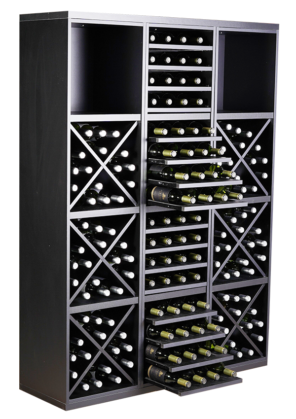 Perfecta para salones, comedores, zonas de recepción o rincones vinícolas donde la estética es tan importante como la capacidad: el diseño en cruces X múltiples crea un efecto visual dinámico y moderno que hace lucir cada botella como parte de una instalación artística.