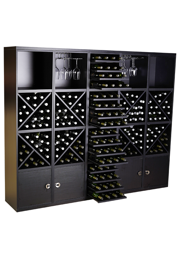 - Cubos con puertas en la zona inferior: sujeción segura, ventilación óptima y exhibición atractiva de decenas de botellas con las etiquetas bien visibles.