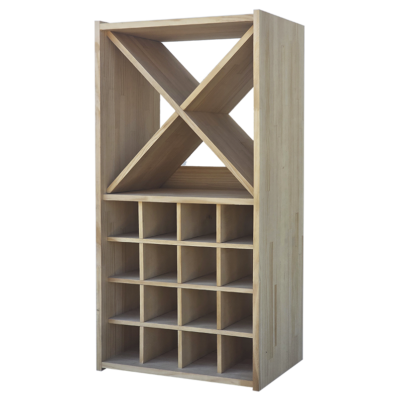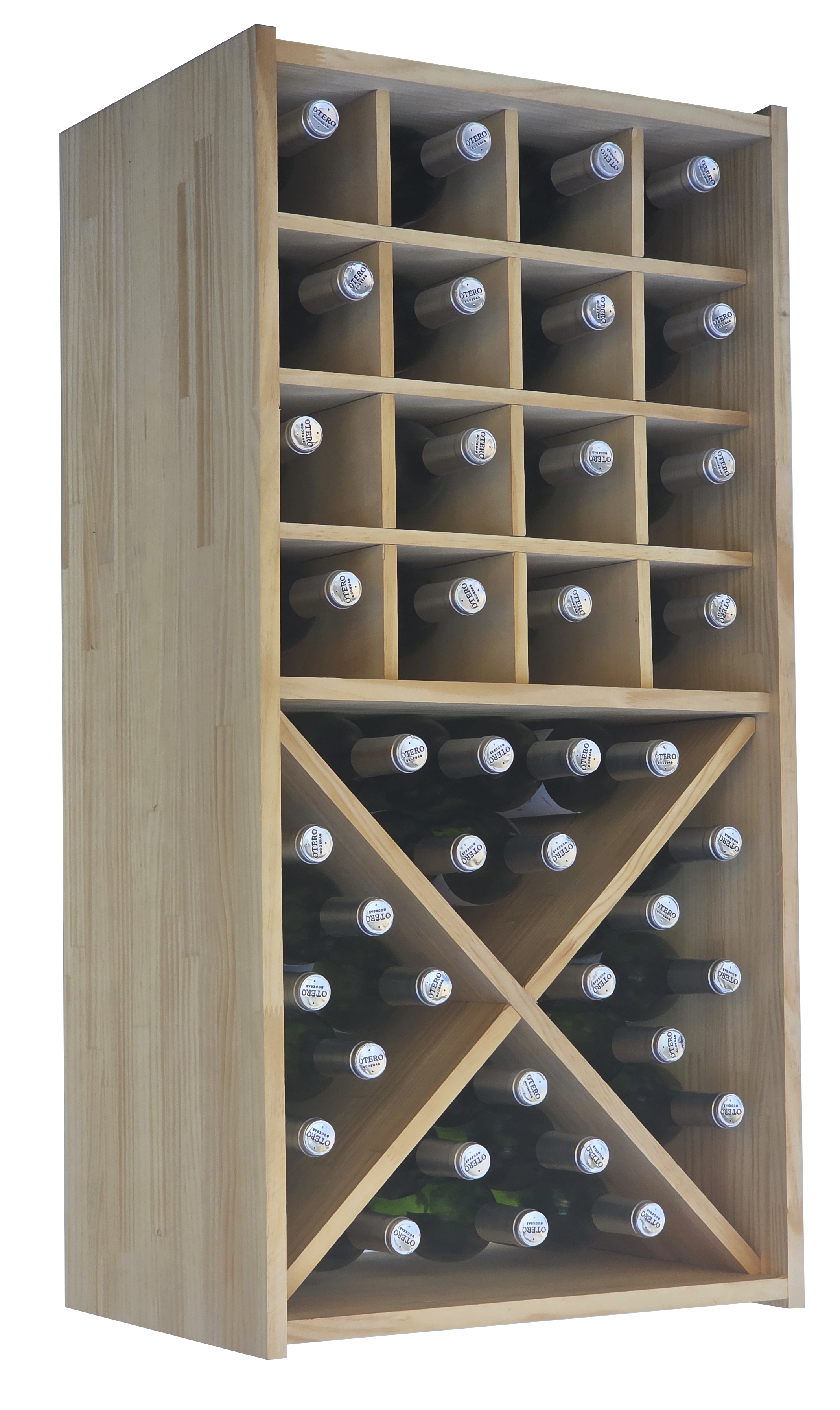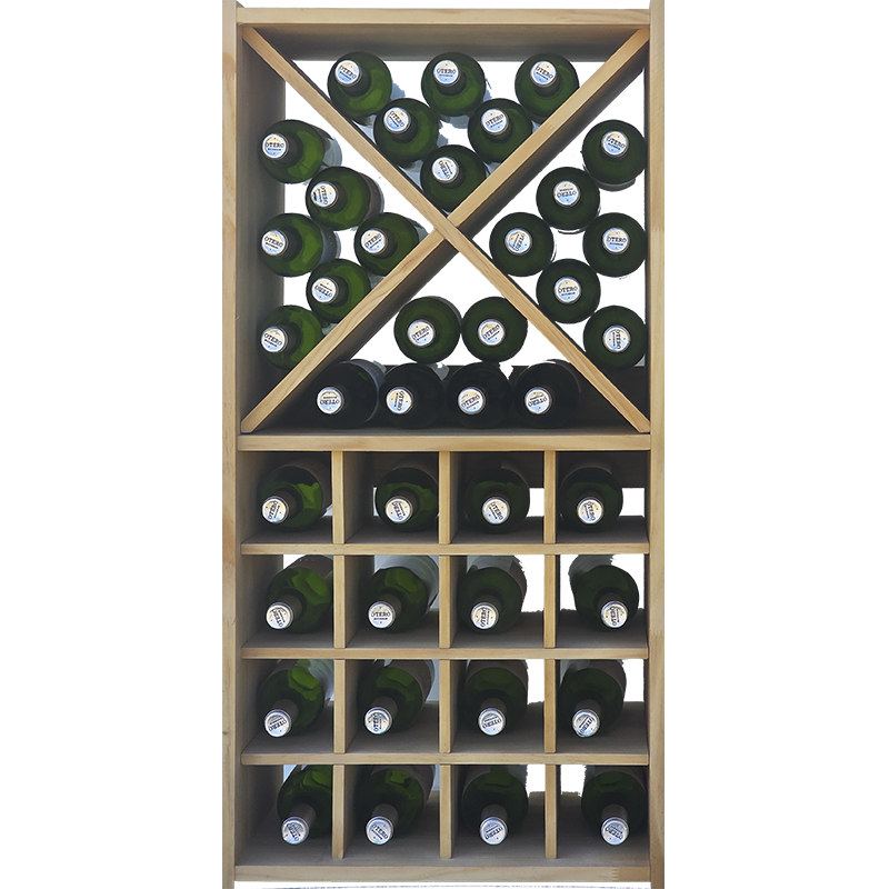 Botellero en madera sostenible con diseño doble X para 48 botellas. Ref 351616