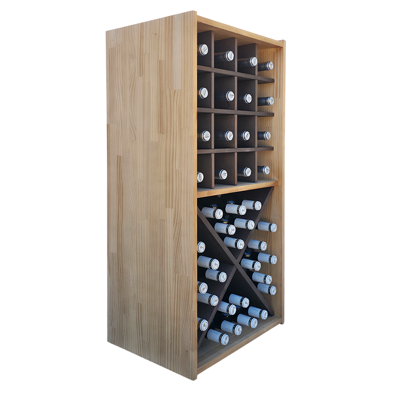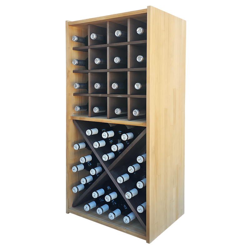 Botellero combinado casillas arriba y X abajo en madera sostenible, 40 botellas. Ref 351620