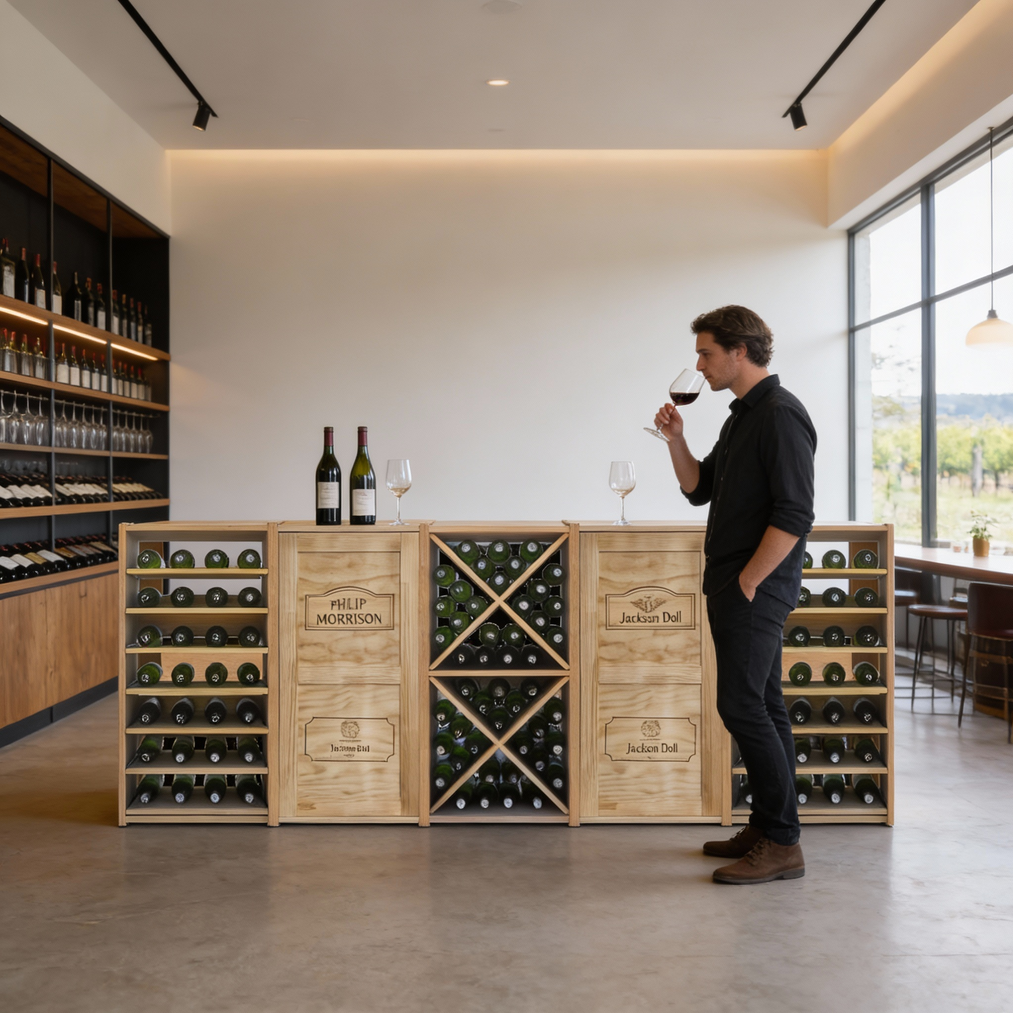 Robusto, práctico y combinable con otros módulos de la serie Monastrell, es perfecto para bodegas domésticas donde se busca comodidad y organización profesional.