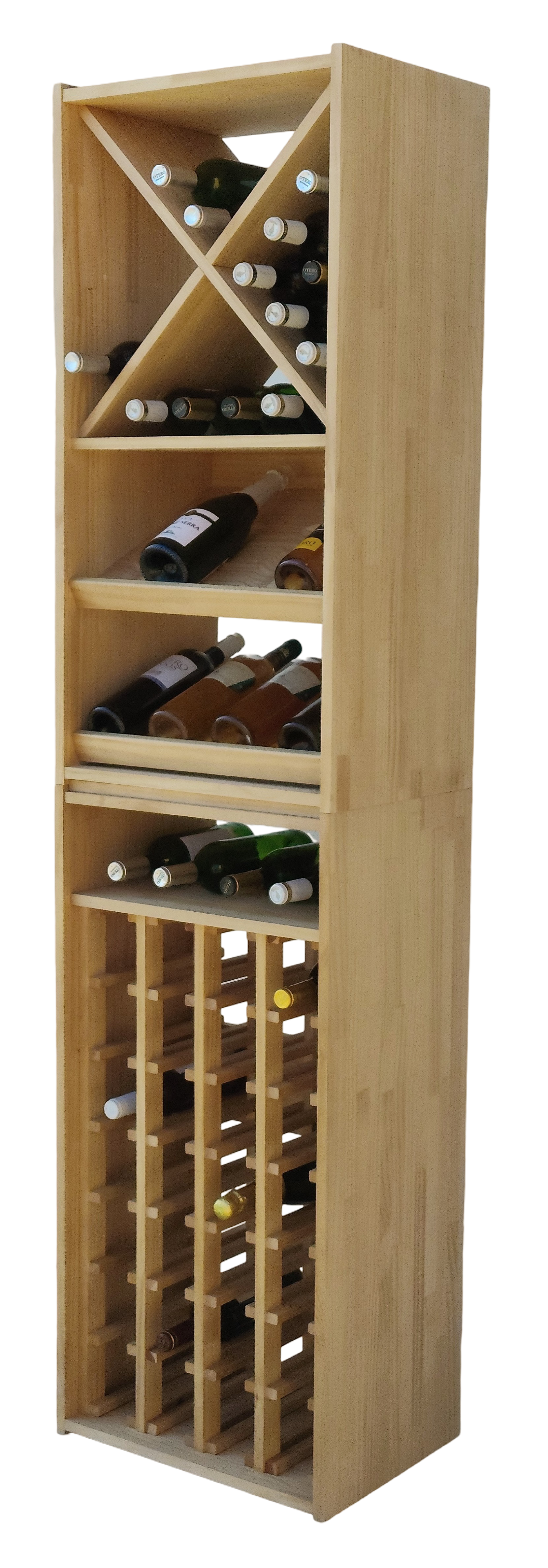 Botellero Monastrell Ref. 322203 – Capacidad para 80-90 botellas con 2 baldas expositoras en madera de pino natural