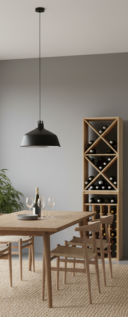• Parte inferior: columnas verticales con travesaños redondeados para almacenamiento clásico y estable de botellas horizontales.