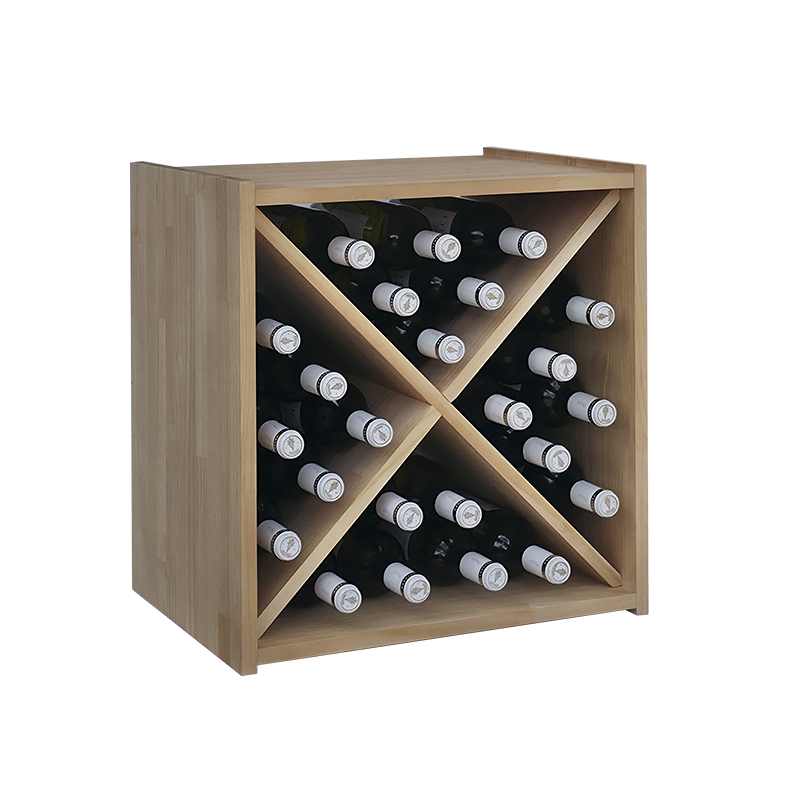 Pequeño Botellero 450016 en madera sostenible con diseño en X para 24 botellas.